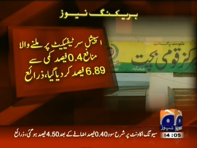بچت اسکیموں پر ملنے والے منافع کی شرح میں کمی کر دی گئی، ڈیفنس سرٹیفکیٹ پر منافع 0.24 فیصد کمی کے بعد 8.68 فیصد کر دیا گیا، اسپیشل سرٹیفکیٹ پر ملنے والا منافع 0.4 فیصد کمی سے 6.89فیصد کر دیا گیا، ذرائع۔