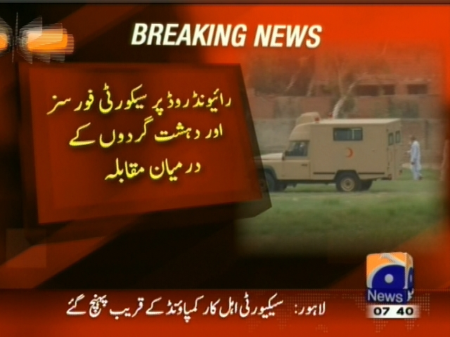 سیکیورٹی اہلکار کمپاونڈ کے قریب پہنچ گئے۔ رائیونڈ روڈ سیکیورٹی فورسز اور دہشت گردوں کے درمیان مقابلہ۔