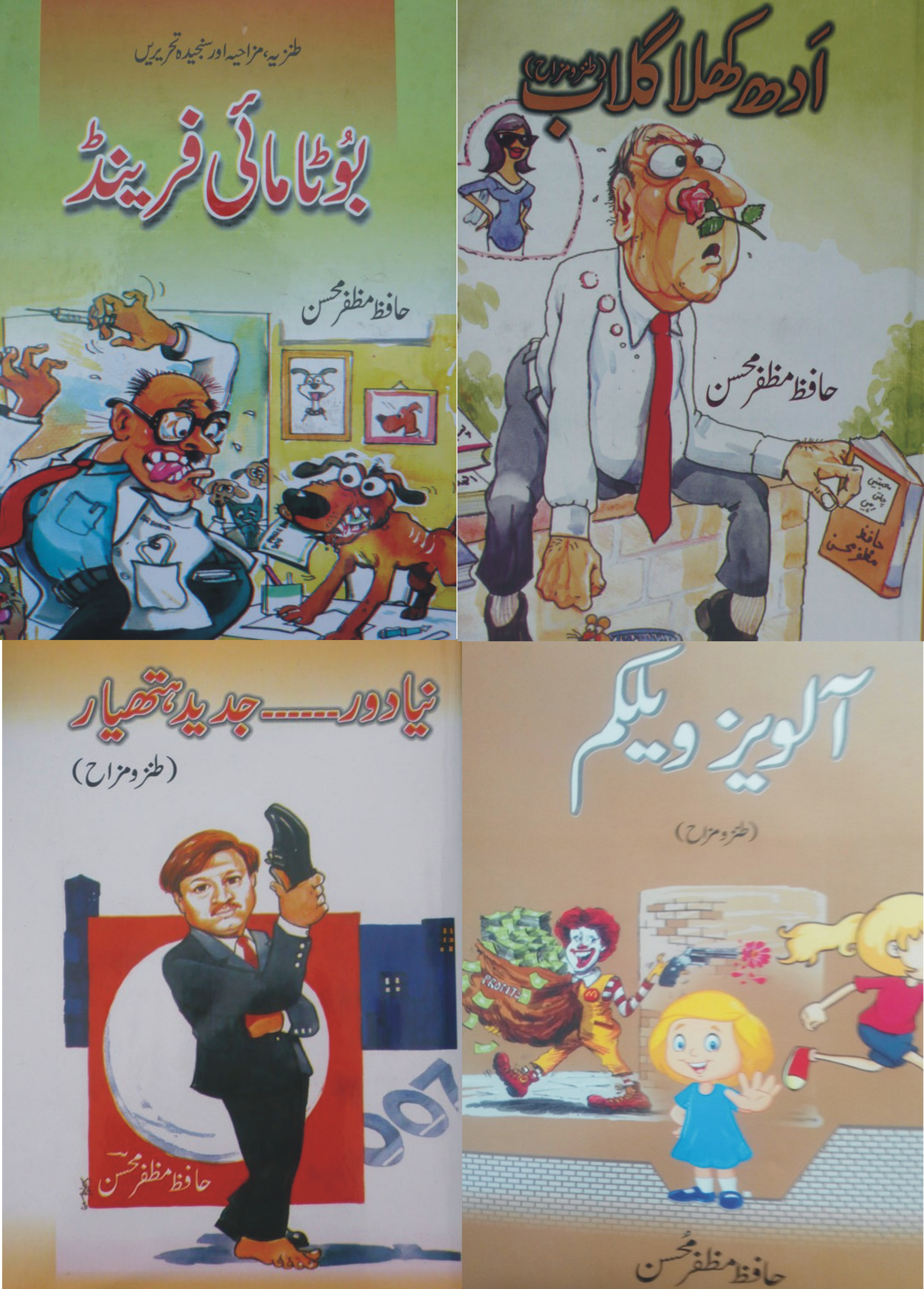 محترم جناب عطاء الحق قاسمی نے حافظ مظفرمحسن کی اس کتاب بارے جو کہا اس کے بعد ہمارے کہنے کے لیے کیا بچا ہے ۔انہوں نے فرمایا ہے کہ ” آثاربتارہے ہیں کہ یہ نوجوان کچھ کرکے ضرور دکھائے گا۔ ملاقات سے پہلے اخبارات کی ورق گردانی کرتے ہوئے کبھی کبھار مظفر کی کوئی تحریر نظر سے گزر جاتی۔ وہ تحریر نہ تومکمل طنزیہ مزاح کے زمرے میںآ تی اور نہ ہی سنجیدہ نثر کے زمرے میں شمار ہوتی بلکہ ان دونوں کے مابین ”وکھری ٹائپ“ کی کوئی تحریر ہوتی۔”(بالکل ایسی ہی یہ کتاب ہے )چند مضامین سے جو موتی میں نے چنے ہیں وہ اس کتاب سے ایسے ہی سمجھیں جیسے دیگ میں سے چند چاول جن سے آپ کو پوری دیگ کے ذائقہ کا علم ہو جائے گا ۔”غوں غوں ،غاں غاں ”میں طنز کے تیر دیکھیں ۔”ویسے آپ کو پتہ ہے اس قوم کا غصہ بڑے بڑے ظلم سہہ کر کچھ عرصہ بعد ٹھنڈا پڑ جاتا ہے ۔””میں ڈر گیا جس طرح ہماری پوری قوم ہر وقت ڈرتی رہتی ہے سیاست دانوں سے ۔ہر دور کے سیاست دانوں نے اس قوم کو خوب ڈرایا ۔ہمیشہ ڈرایا اور جتنا دل چاہا ڈرایا ۔”