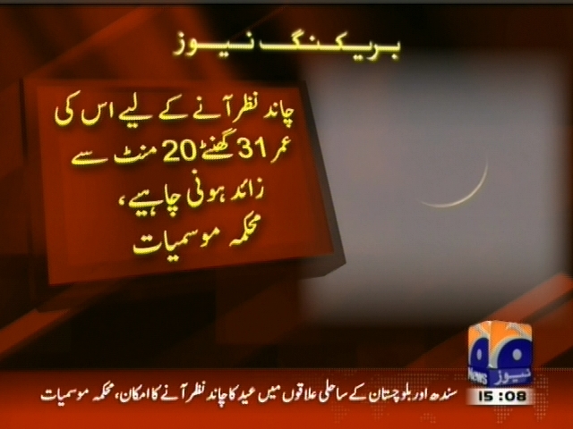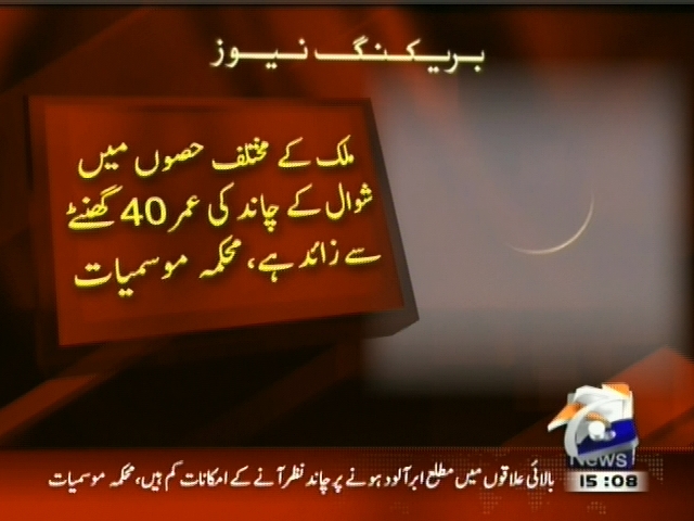 چاند نظر آنے کے لیے اس کی عمر 31 گھنٹے 20 منٹ سے زائد ہونی چاہیے، ملک کے مختلف حصوں میں شوال کے چاند کی عمر 40 گھنٹے سے زائد ہے، محکمہ موسمیات