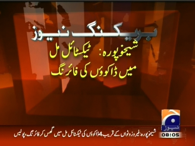 شیخوپورہ: ٹیکسٹائیل مل میں ڈاکووں کی فائرنگ۔ ڈاکووں کی فائرنگ سے سیکیورٹی گارڈ جاں بحق۔