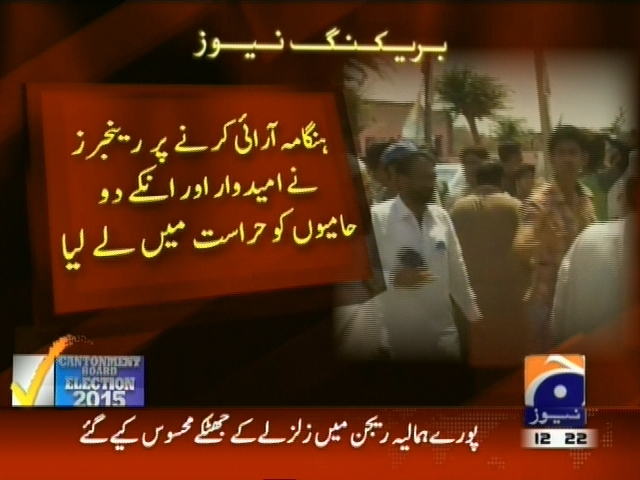 شورکوٹ : بلدیاتی انتخابی عمل کے دوران بدنظمی، مبینہ دھاندلی کا الزام اور احتجاج، مظاہرین کا پولنگ بند کرنے کا مطالبہ، ہنگامہ آرائی کرنے پر رینجرز نے امیدوار اور انکے دو حامیوں کو حراست میں لے لیا۔