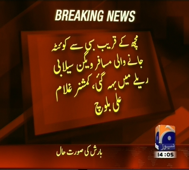 سبی کے علاقوں کچھی اور بولان میں طوفانی بارشیں، مچھ کے قریب سبی سے کوئٹہ جانے والی مسافر ویگن سیلابی ریلے میں بہہ گئی، کمشنر غلام علی بلوچ۔