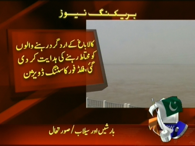 دریائے سندھ میں کالا باغ کے مقام پر اونچے درجے کے سیلاب کا خدشہ، کالا باغ کے اردگرد رہنے والوں کو محتاط رہنے کی ہدایت کر دی گئی، فلڈ فور کاسٹنگ ڈویژن۔