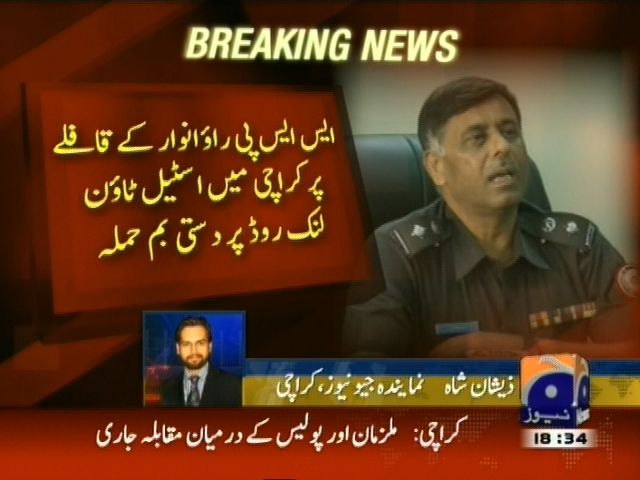 سابق ایس ایس پی ملیر رائو انوار کے قافلے پر کراچی میں دستی بم حملہ، سابق ایس ایس پی ملیر رائو انوار کے قافلے پر کراچی میں اسٹیل ٹائون لنک روڈ پر دستی بم حملہ، حملہ آوروں اور پولیس کے درمیان مقابلہ جاری۔