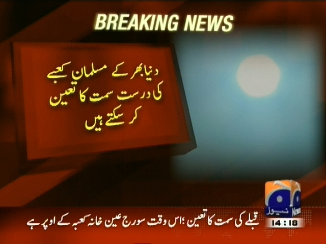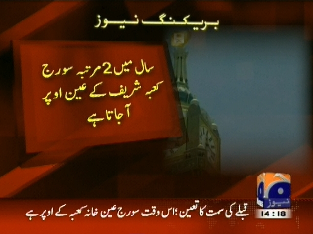 سورج خانہ کعبہ کے عین اوپر آ گیا، دنیا بھر کے مسلمان کعبے کی درست سمت کا تعین کر سکتے ہیں، سال میں 2 مرتبہ سورج کعبہ شریف کے عین اوپر آ جاتا ہے۔