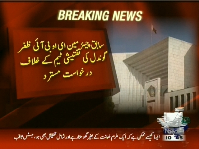 سپریم کورٹ میں ای او بی آئی کرپشن کیس کی سماعت۔سابق چیئرمین ای او بی آئی ظفر گوندل کی تفیشی ٹیم کے خلاف درخواست مسترد۔ ایف آئی اے نے سپریم کورٹ میں گرفتار کر لیا۔