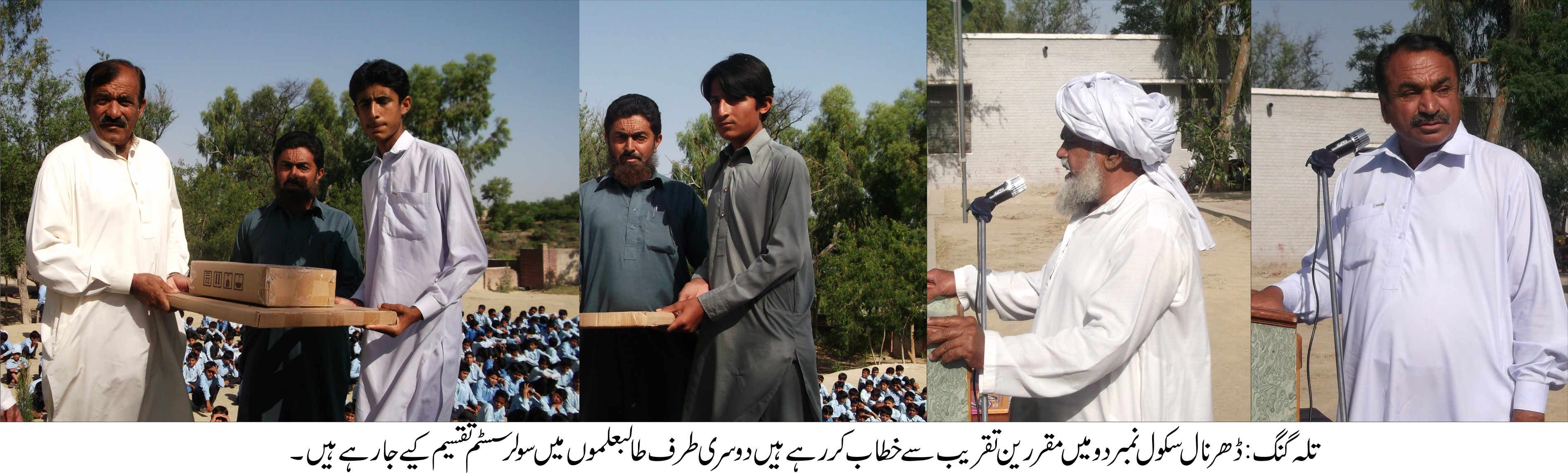 تلہ گنگ (تحصیل رپو رٹر) ڈھر نا ل بوائز ہا ئی سکو ل نمبر دو میں 29بچوں میں سو لر سسٹم تقسیم کیے گئے ،کلا س انچار ج ملک یعقو ب صا لح اور ہیڈ ما سٹر کو اہل علا قہ کا خر اج تحسین ۔تفصیل کے مطا بق ڈھر نا ل بوائز ہا ئی سکو ل نمبر دو میں پر وقار تقر یب کا انعقا د کیا گیا جس میں نما یا ں پوزیشن لینے والے طا لبعلموں میں سو لر سسٹم تقسیم کیے گئے ۔دسو یں کلا س کے انچارج ملک یعقوب صا لح ،سا ئنس ٹیچر مہتا ب احمد اور ہیڈ ما سٹر سلطا ن ذکر یا ثا قب کی انتھک محنت کی وجہ سے دسویں کلا س کا رزلٹ سو فیصد رہا اور 2013کو فا رغ التحصل ہو نے والے17بچوں کو چودہ اگست کی تقر یب میں سو لر سسٹم دئیے گئے جبکہ با قی 29طا لبعلموں میں گز شتہ دنو ں ہو نے والی تقر یب میں سو لر سسٹم تقسیم کیے گئے ہیں ۔سو لر سسٹم حا صل کر نے والے کا شف ،محمد آ صف ،محمد رئیس ،شبیر ،مظہر عباس ،محمد شہزاد ،تا بش عمر ان ،جیند عمر ان ،محمد فیصل نواز ،مبشر صد یق ،تا بش جا وید ،جا وید عمر ان ،تا بش عمر ان ،سید واجد، علی ،محمد ذیشان ،سید ذیشان علی سمیت دیگر سٹو ڈنٹ تھے ۔تقر یب میں سکو ل کمیٹی کے ممبران ملک احمد خا ن ،حا جی محمد صد یق ،محمد اشر ف ،حا جی سکندر خا ن ،طا ہر محمودنے بھی شر کت کی اور سکو ل انتظا میہ کی انتھک محنت کو سر اہا اور حو صلہ افزائی کی۔