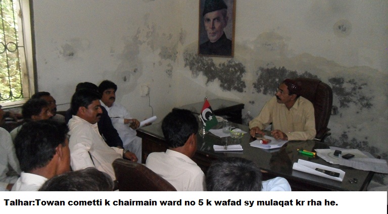 تلہار(نمائندہ)ٹاؤن کامیٹی کے کاؤنسلر لکھی جمالی،مسمات ہدایت قمبرانی،محمد عثمان دلوانی کی قیادت میں وارڈ نمبر 5کے رہاشوں کا ایک وفد ٹاؤن کے چیئرمین میر شاہداحمد ٹالپر سے ملاقات کی اس موقع پر وفد نے اپنے وارڈ کے اہم مسائل سے آگاہ کیا جن میں ڈرینیج سسٹم،واٹر سپلائی اور روڈ شامل ہیں وفد کو چیئرمین نے یقین دہانی کرائی کے پورے شہر میں اولیت کے بنیاد پر تمام ضروری کام جلد کرائے جائیں گے اس وقت بجیٹ ناکافی ہے انہوں نے کہا کے شہریوں کا حق ہے کے وہ ہمیں اپنے مسائل سے آگاہ کریں۔