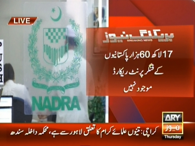 دہشت گردی کے خلاف جنگ، الیکشن پر سوالی نشان، 17 لاکھ 60 ہزار پاکستانیوں کے فنگر پرنٹ ریکارڈ موجود نہیں، سب کے پاس قومی شناختی کارڈ موجود ہیں۔