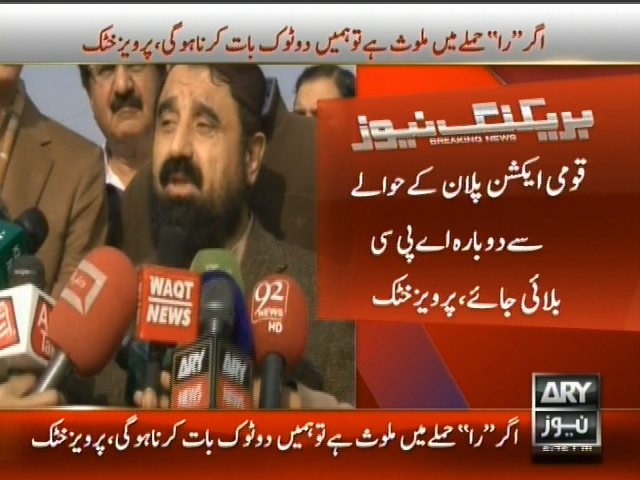 طورخم کا راستہ کھلا ہے اسے بند کیا جائے، بغیر پاسپورٹ افغانیوں کو پاکستان داخلے کی اجازت نہ دی جائے، قومی ایکشن پلان کے حوالے سے دوبارہ اے پی سی بلائی جائے، پرویز خٹک۔