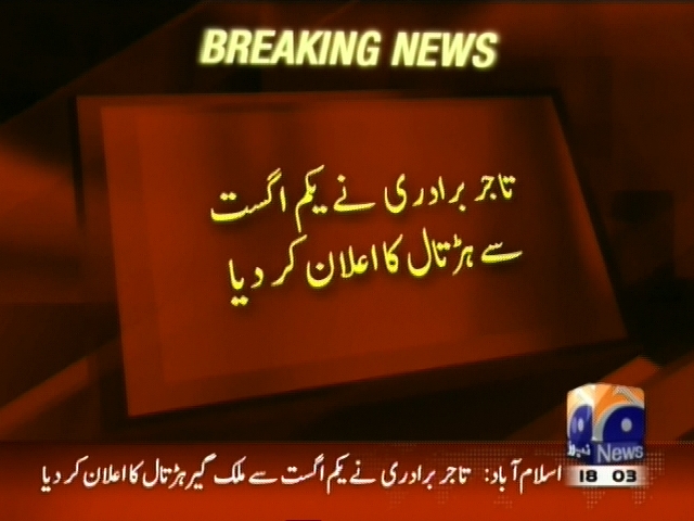 تاجروں کے حکومت سے ودہولڈنگ ٹیکس پر مذاکرات ناکام، تاجر درادری نے یکم اگست سے ہڑتال کا اعلان کر دیا،حکومت یہ ٹیکس واپس نہیں لے سکتی، خومتی ٹیم کا موقف۔