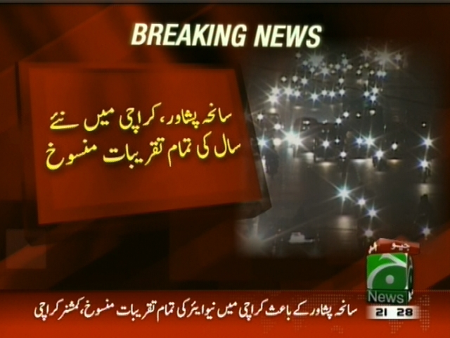 سانحہ پشاور، کراچی میں نئے سال کی تمام تقریبات منسوخ، ہوٹلوں اور دیگر مقامات پر بھی تقریبات پر پابندی ہو گی، کمشنر کراچی۔