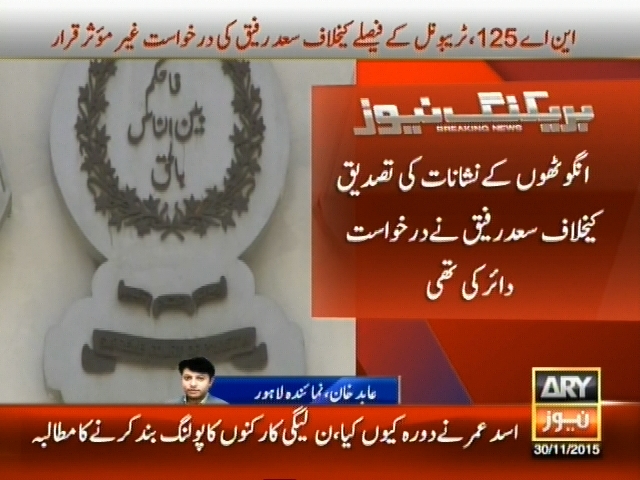 این اے 125 میں ٹربینل کے عبوری حکم کے خلاف درخواست کی سماعت، سپریم کورٹ نے درخواست غیر موثر قرار دے کر نمٹا دی، انگوٹھوں کے نشانات کی تصدیق کیخلاف سعد رفیق نے درخواست دائر کی تھی۔