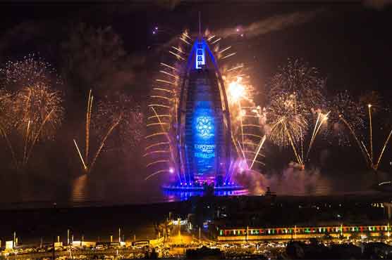 پہلے دن کی تقریبات کا اختتام دبئی میں برج العرب پر آتش بازی کے زبردست مظاہرے سے ہوا۔ اس موقع پر تھری ڈی روشنیوں کی مدد سے برج العرب کی عمارت پر خوبصورت نقش و نگار بنائے گئے۔