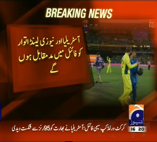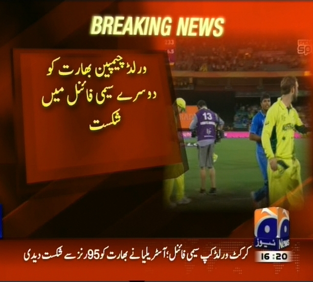 ورلڈ کپ 2015، دوسرے سیمی فائنل میں اسٹریلیا نے بھارت کو دھول چٹا دی ، ورلڈ چیمپین کو دوسرے سیمی فائنل میں شکست، اسٹریلیا اور نیوزی لینڈ اتوار کو فائنل میں مد مقابل ہوں گے، دھونی کے گھر پر سیکورٹی لگ گئی۔