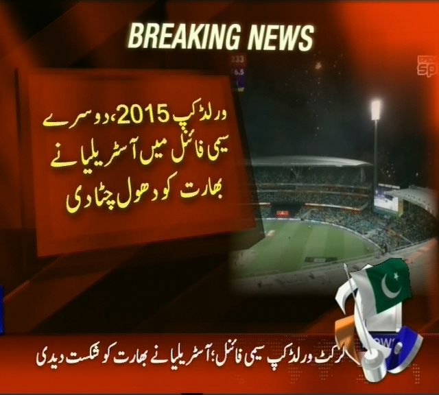 ورلڈ کپ 2015، دوسرے سیمی فائنل میں اسٹریلیا نے بھارت کو دھول چٹا دی، ورلڈ چیمپین دوسرے سیمی فائنل میں شکست، اسٹریلیا اور نیوزی لینڈ اتوار کو فائنل میں مد مقابل ہوں گے، دھونی کے گھر پر سیکورٹی لگ گئی۔