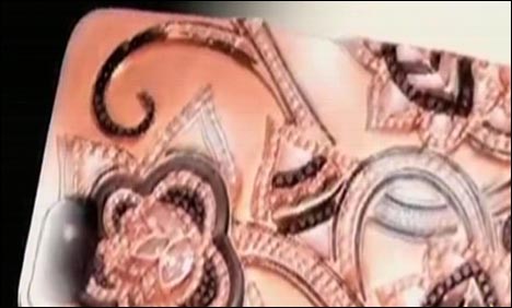اور پھر نادرونایاب گلابی، سیاہ اور سفید ہیرے ہاتھ سے لگائے گئے ہیں۔ موبائل فون کور پر 18 قیراط سونا بھی لگایا گیا ہے اور اس کور کی قیمت سوا تین لاکھ پاکستانی روپے ہے۔