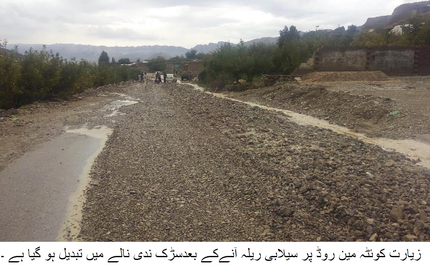 زیارت ( نمائندہ ) وادی زیارت میں جاری مون سون کے بارشوں نے یکدم طوفانی رخ اختیار کر لی ۔تفصیلات کے مطابق ہفتہ کی سہ پہر کو جب بارش کا سلسلہ شروع ہوا تو پوراعلاقہ اس کی لپیٹ میں رہا کوئٹہ زیارت مین روڈ پر زندرہ سمیت اکثر مقامات پر سیلاب آنے کی وجہ سے ٹریفک کے لئے معطل رہی۔ مین سڑک پر ندی نالیاں آنے کی وجہ سے پانی اپنے ساتھ بڑے بڑے پھتر ، کیچڑ اور بجری سڑک پر چھوڑ گئی جس کی وجہ سے ٹریفک کی روانی معطل رہی اور کافی وقت تک زندرہ کے مقام پر گاڑیوں کی لمبی لمبی قطاریں لگ گئی اور لوگ دوران بارش سڑک پر پھنسے رہے۔